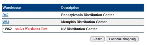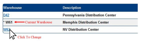 Your account will have a default warehouse from which you will be viewing and selecting products and inventory for online orders. You can switch your warehouse for viewing and selecting products for your orders by clicking “Select Ship From Warehouses” on the right sidebar.
