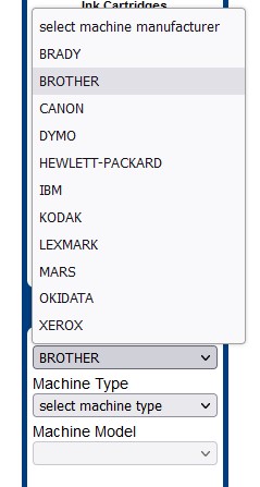 Drill down to locate your product by Machine Manufacturer, then Machine Type, and finally, by Machine Model Number: