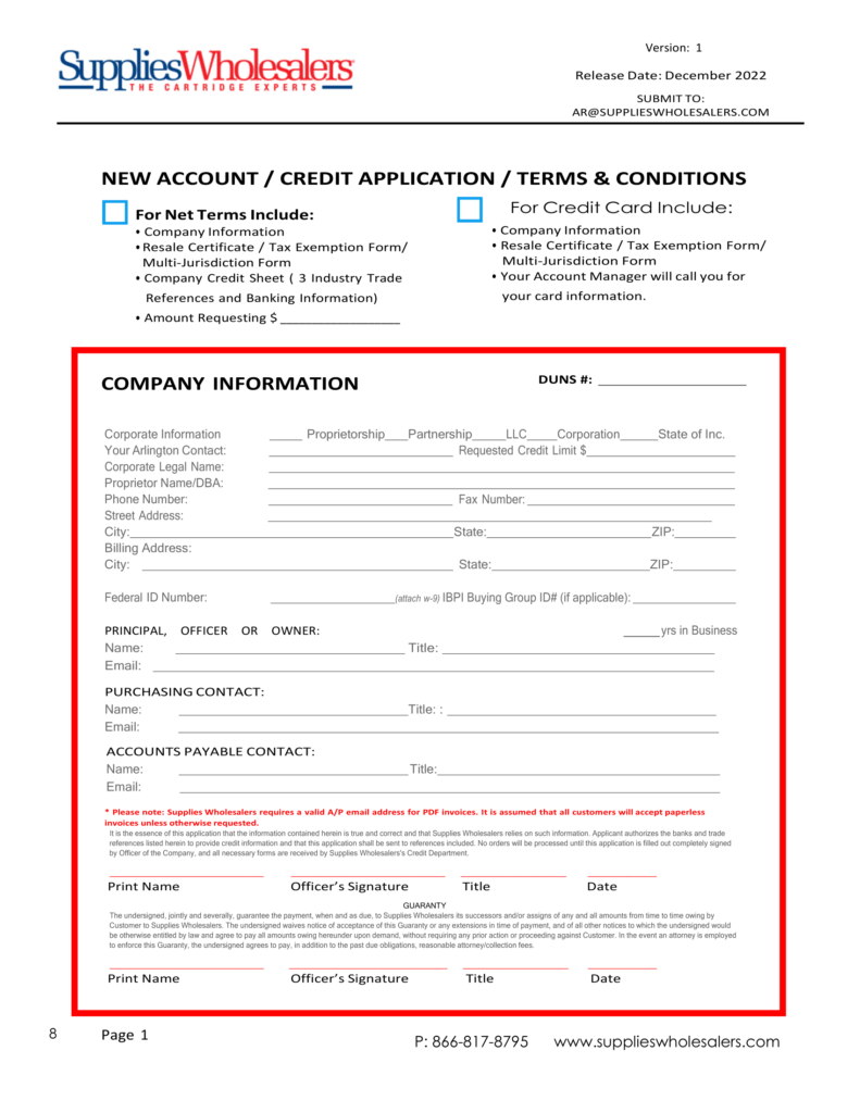Reseller Support Become a Dealer DOWNLOAD SW Credit Application Supplies Wholesalers Credit Application DownLoad