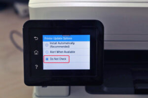 - Touch Printer Update Options, then select Do Not Check – No