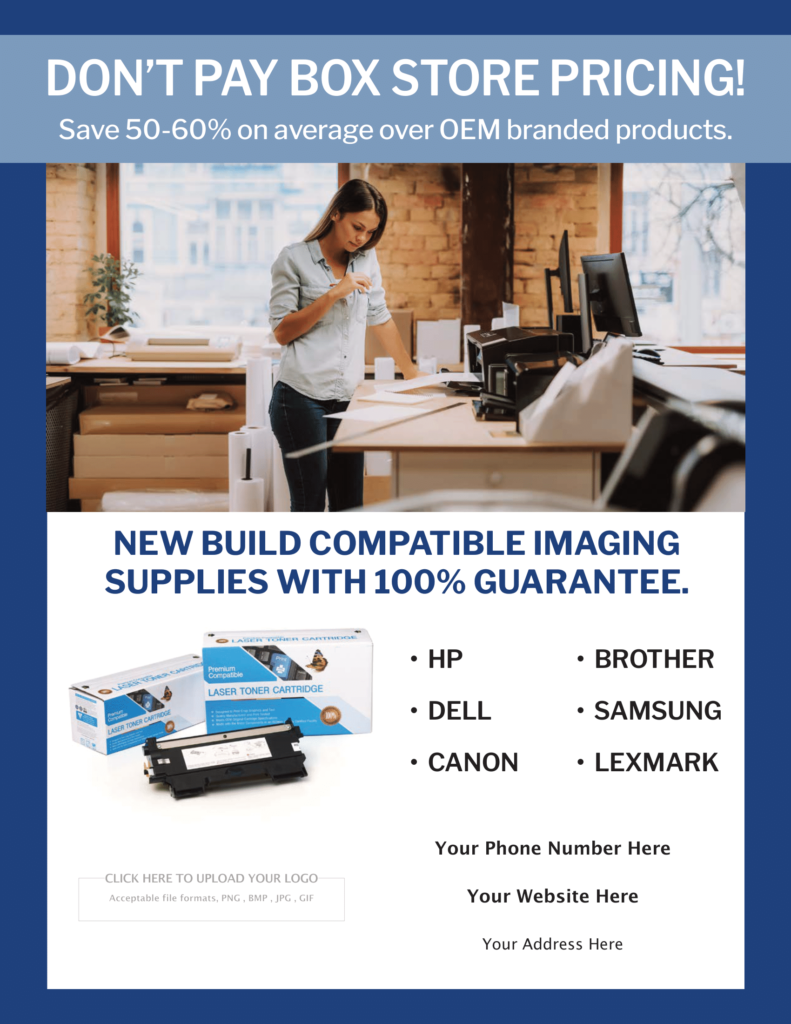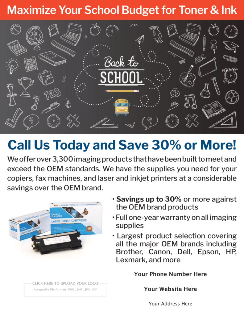 Download Flyers Reseller Marketing Resources FALL 2024 SW RETAIL FLYER Download PDF Fall 2024 SW retail flyer PDF View Flipbook Fall 2024 SW retail flyer Flipbook End Of School Year - Let's Do The Math download PAY LESS FOR YOUR IMAGING SUPPLIES download download SAFEGUARD YOUR BUSINESS WITH MICR TONER download download LET'S DO THE MATH Download Download Back to School Download Download DON'T PAY BOX STORE PRICES Download